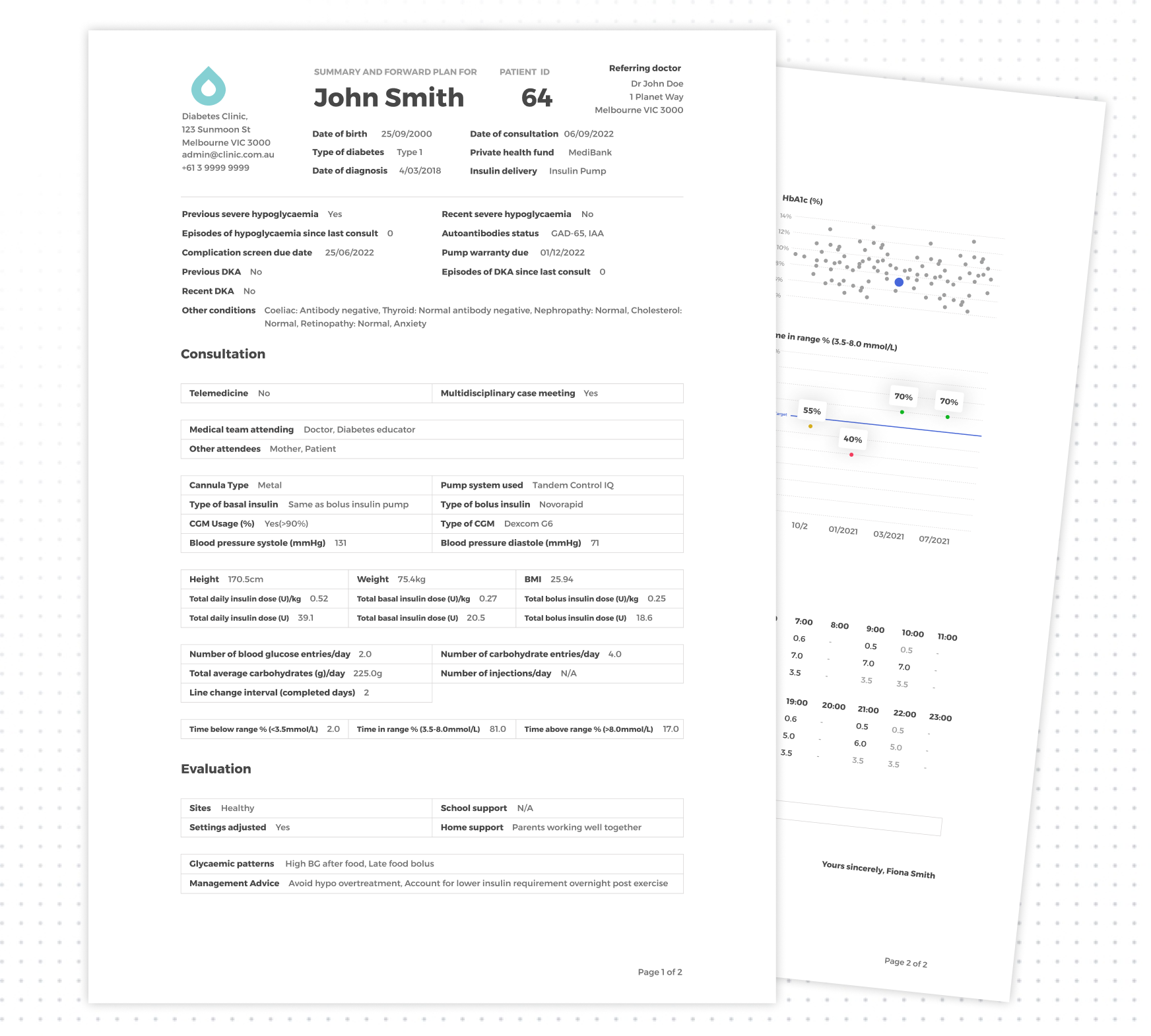 The summary sheet can easily be uploaded to the patient's medical record or even sent to their referring doctor.